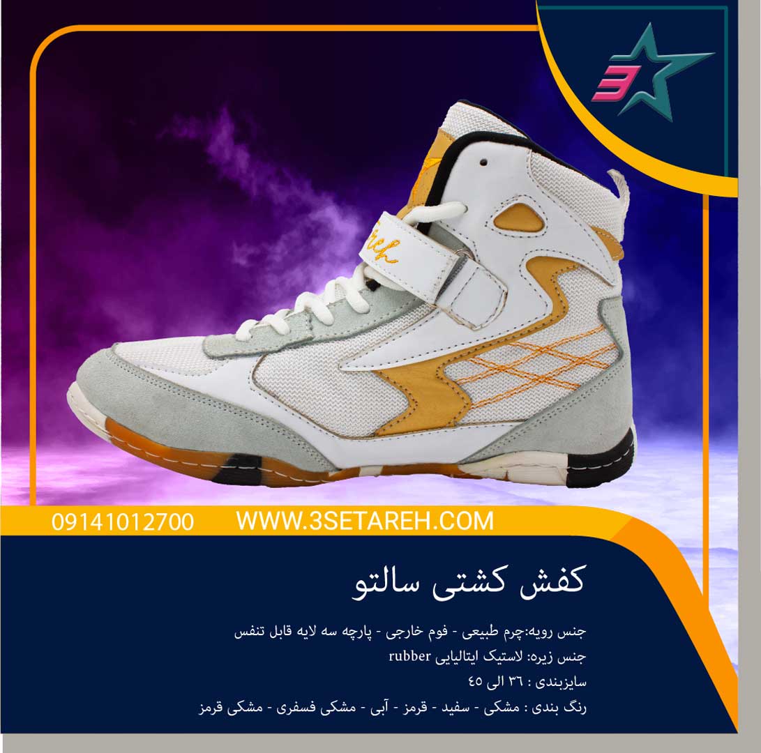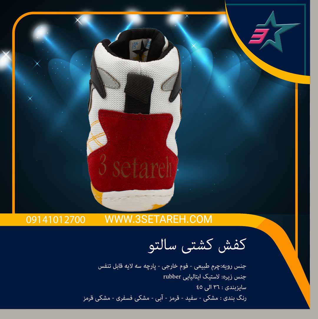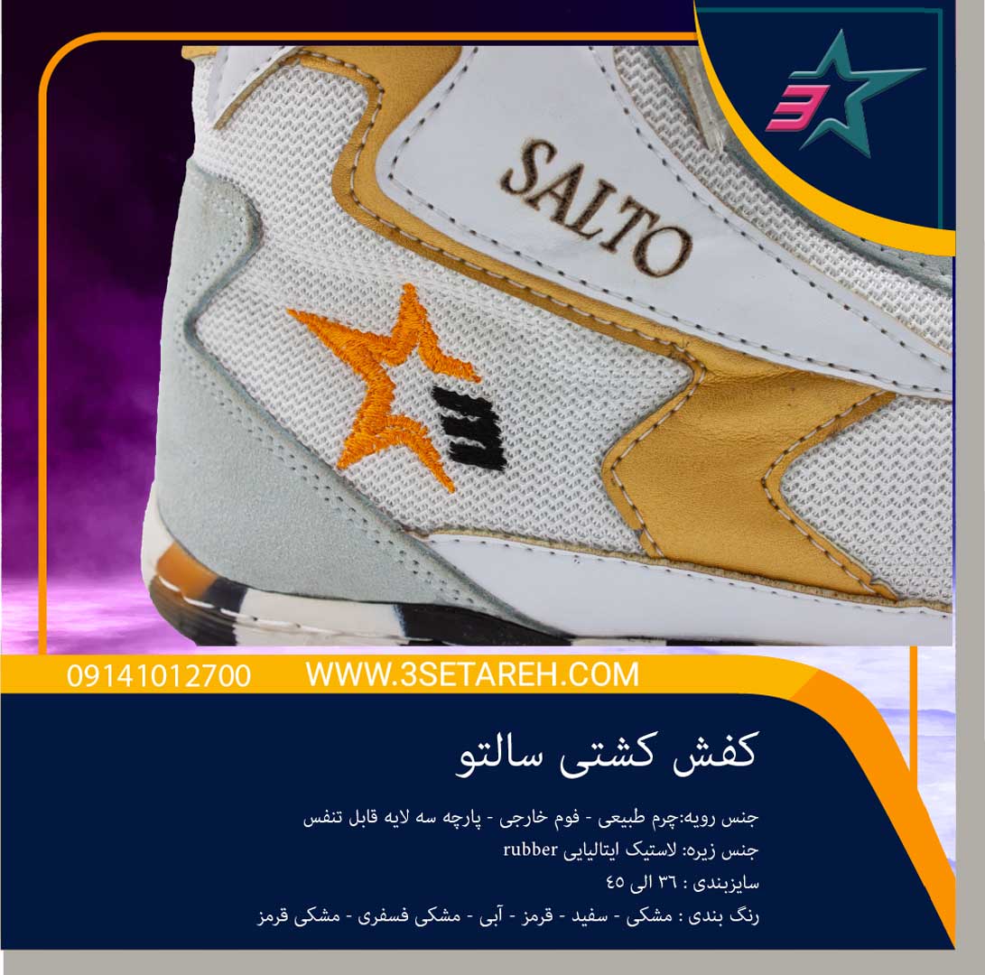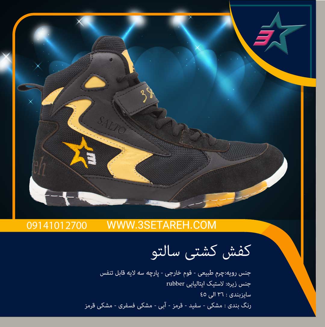 لطفا به هنگام خرید کفش کشتی سالتو SALTO WRESTLING SHOES به نام کامل سه ستاره با شماره ثبت 327491 توجه فرمایید. تذکر: هر گونه سوء استفاده از نام سه ستاره پیگرد قانونی خواهد داشت.